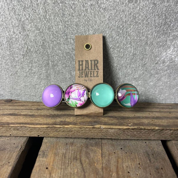 HandgemaaktMateriaal: NikkelvrijKleur: Paars, turquoiseLengte: 9 cmBreedte: 2 cm