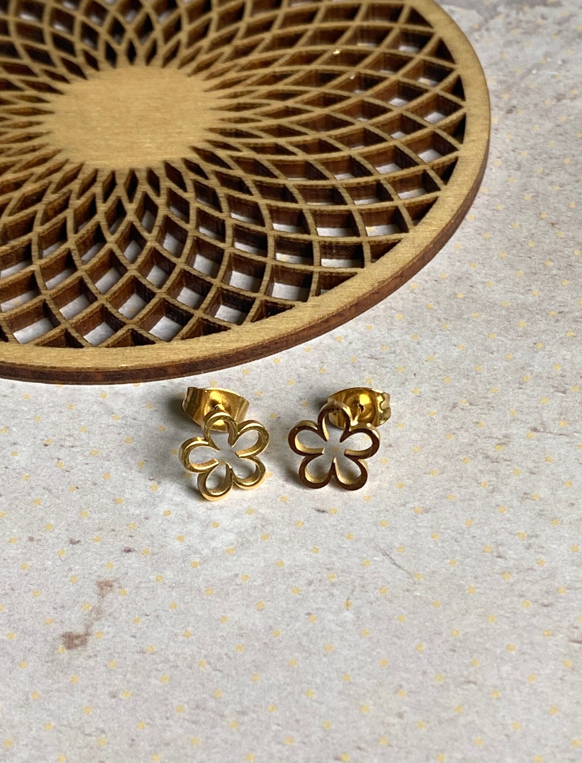 Mooie, roestvrijstalen oorknopjes in de vorm van een bloem.