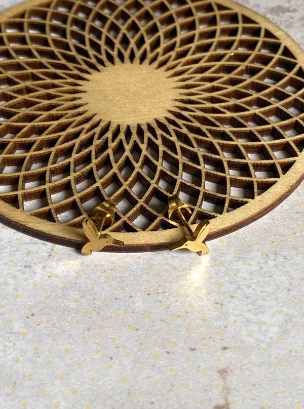 Mooie, roestvrijstalen oorknopjes in de vorm van een kolibrie.