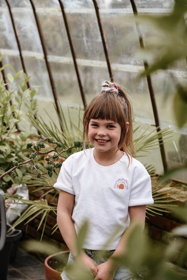 HandgemaaktModel: Scrunchie maxiMateriaal: 80% bamboe 20% katoenKleur: MulticolorOmtrek: 15 cm