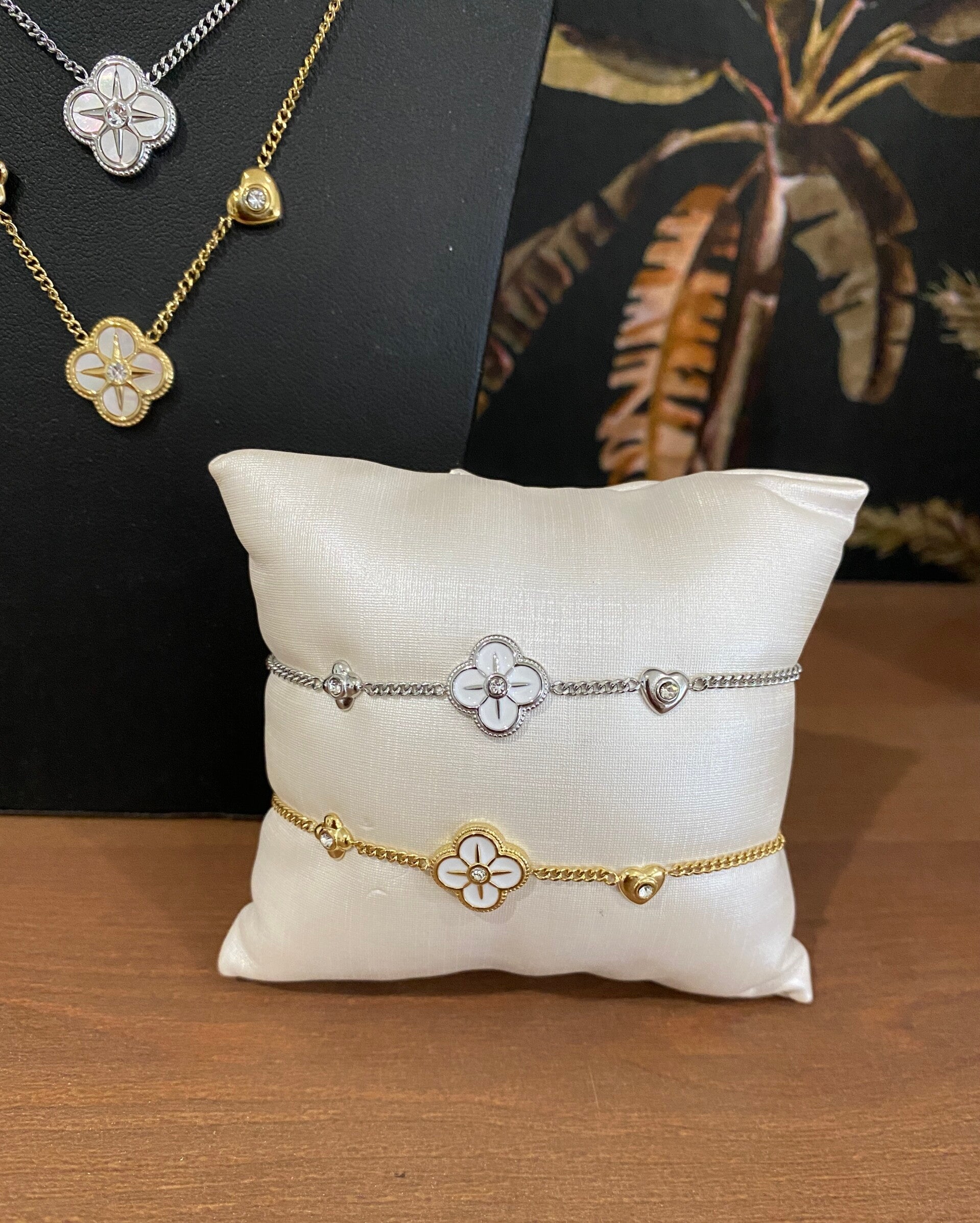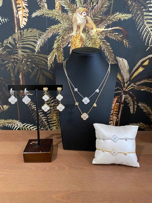 Je kunt hem superleuk combineren met de bijbehorende ketting en oorbellen of met andere zilverkleurige sieraden.
