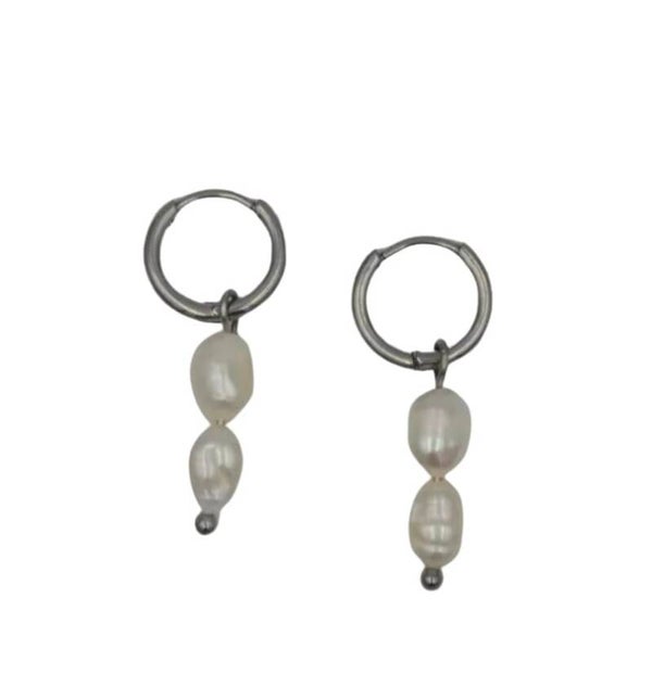 Stainless steel hoops van 3 cm lang met 2 parels.Oorbellen van roestvrijstaal zijn waterproof en hypoallergeen.