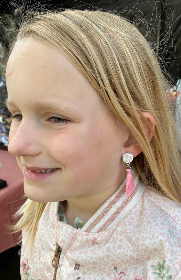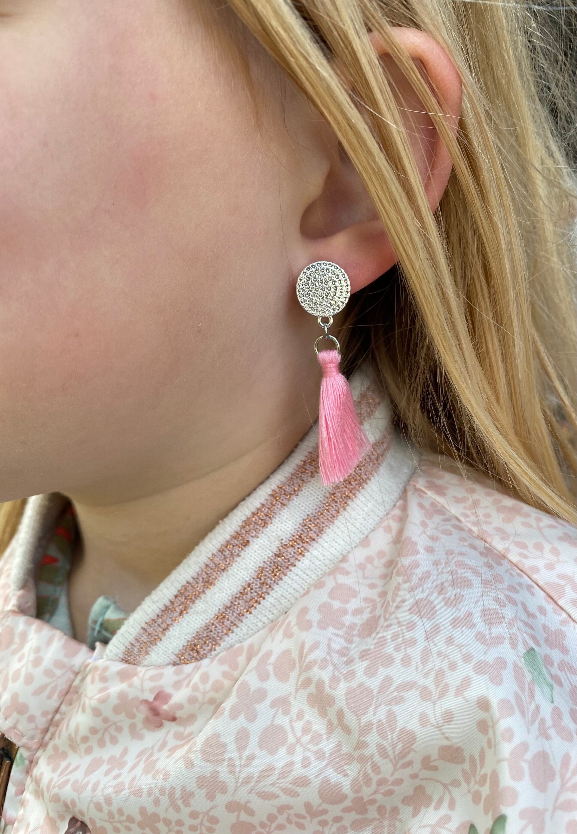 Superleuke, speelse kwastjes aan een zilverkleurig, nikkelvrij oorstekertje!