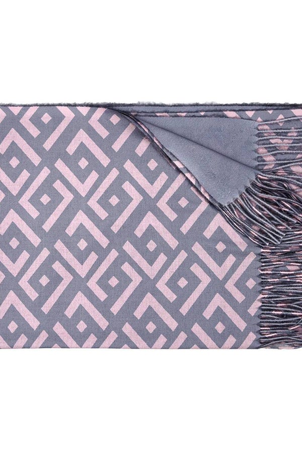 Mooie sjaal met all over print in grijs en roze.
