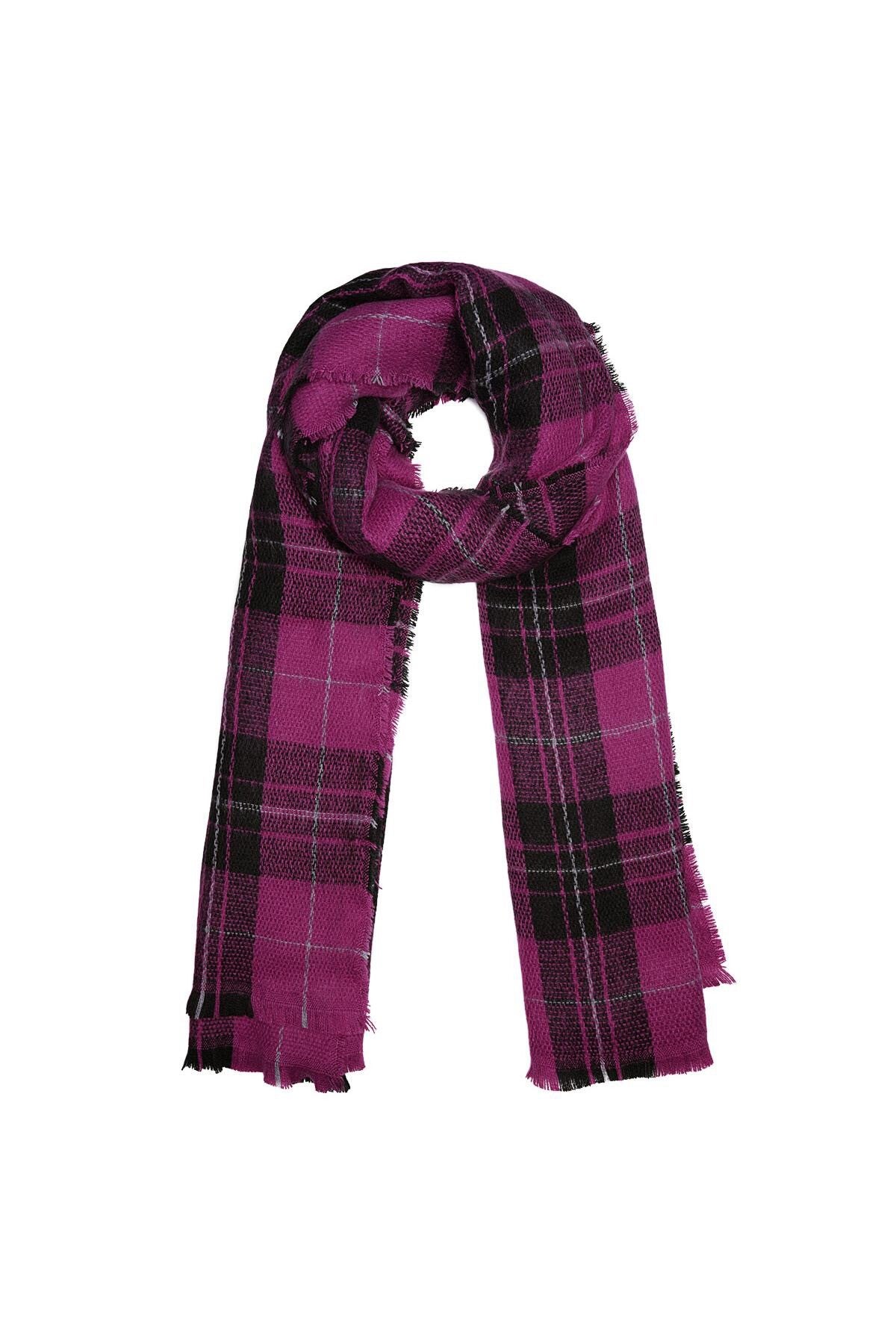 Superleuke, roze sjaal met zwarte ruitjes die je perfect kunt combineren met een warme muts en handschoenen voor een winterse look!
