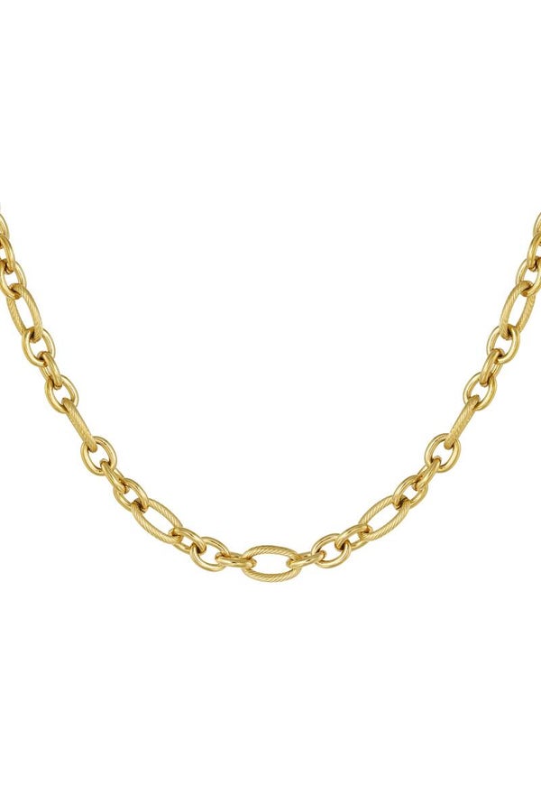 Deze ketting met kleine en grote schakels is een musthave!Je kunt hem op veel verschillende manieren combineren, wat hem een ideaal basisstuk maakt!Hij is gemaakt van roestvrij staal en heeft een afmeting van 41cm, verstelbaar t.e.m. 46cm.