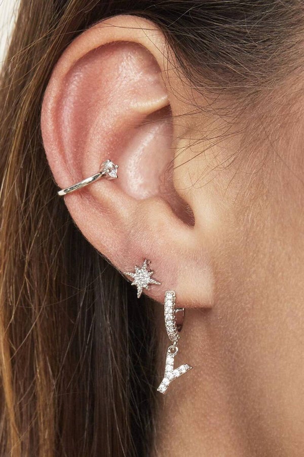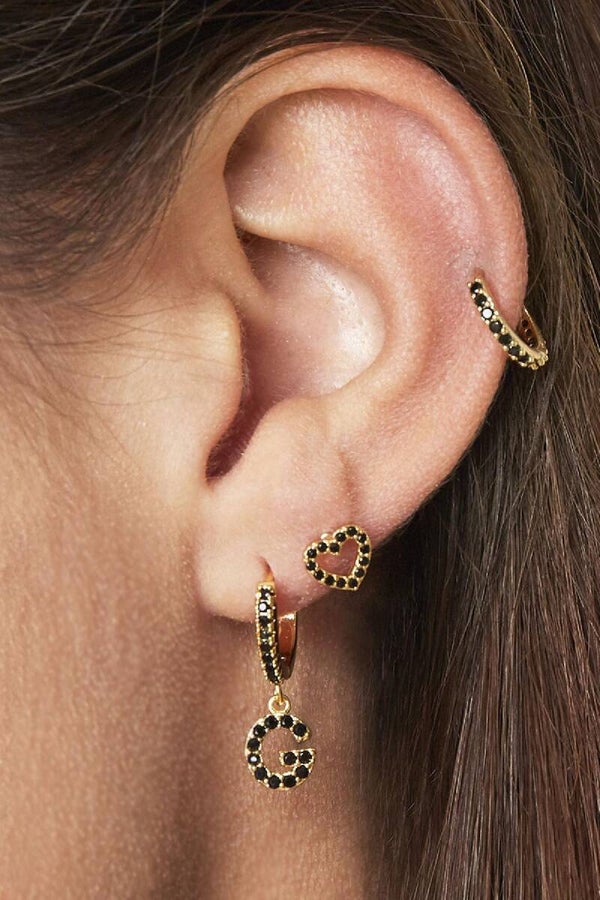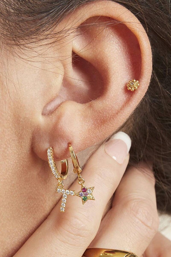 Mooie, vergulde initiaal creool met kleine zirkoniasteentjes.