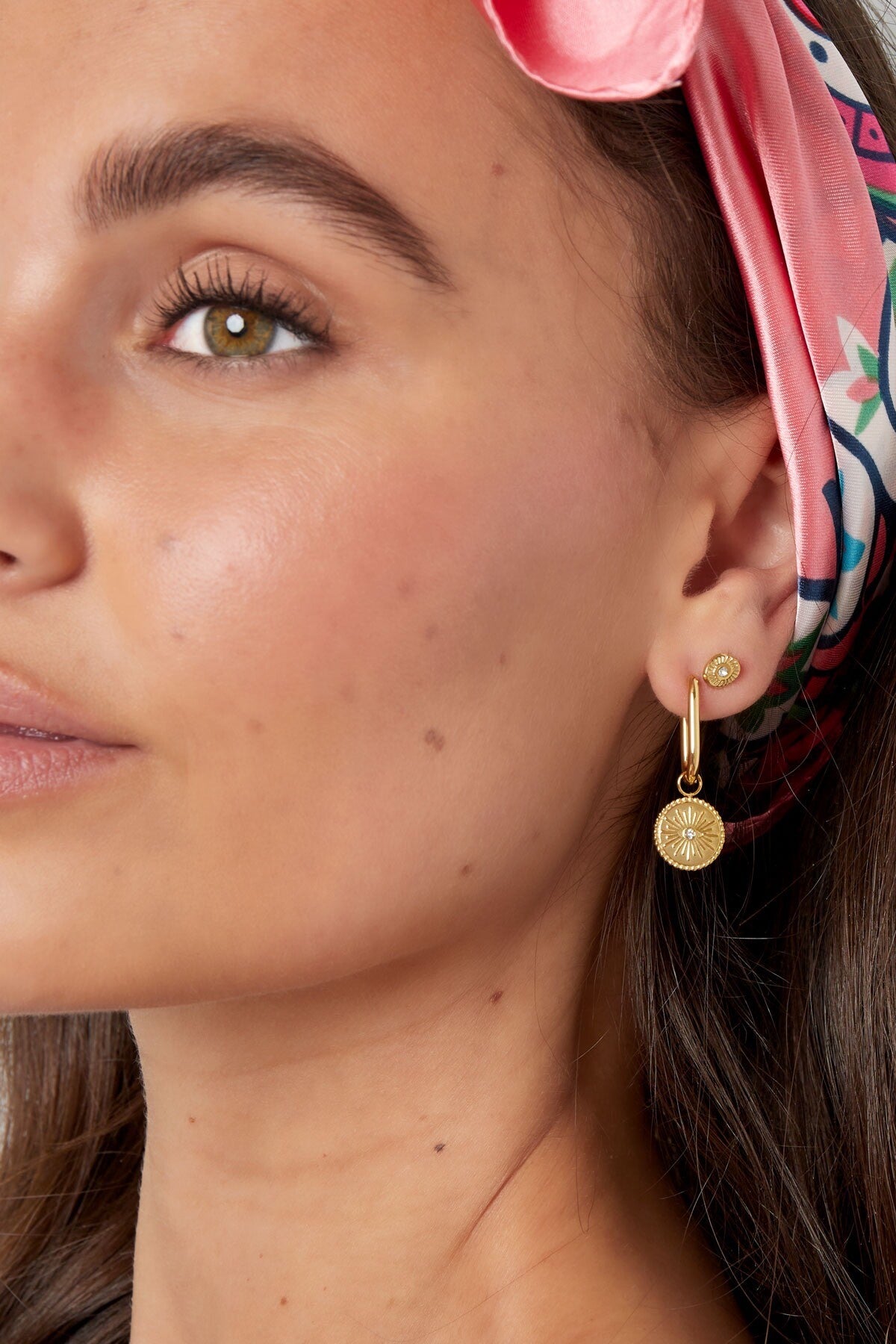 Hoe schattig zijn deze gouden oorstekers in de vorm van een cirkel imet streepjes erop en een strass steentje in het midden!