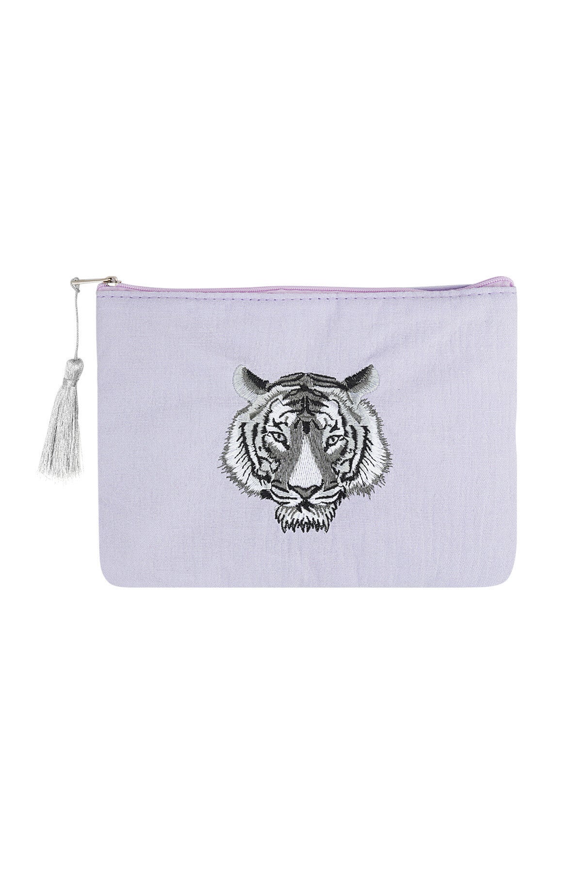 Hoe vrolijk is deze make-up tas met een zilverkleurige tekening van een tijger? Een musthave voor de lente en zomer als je het mij vraagt!
