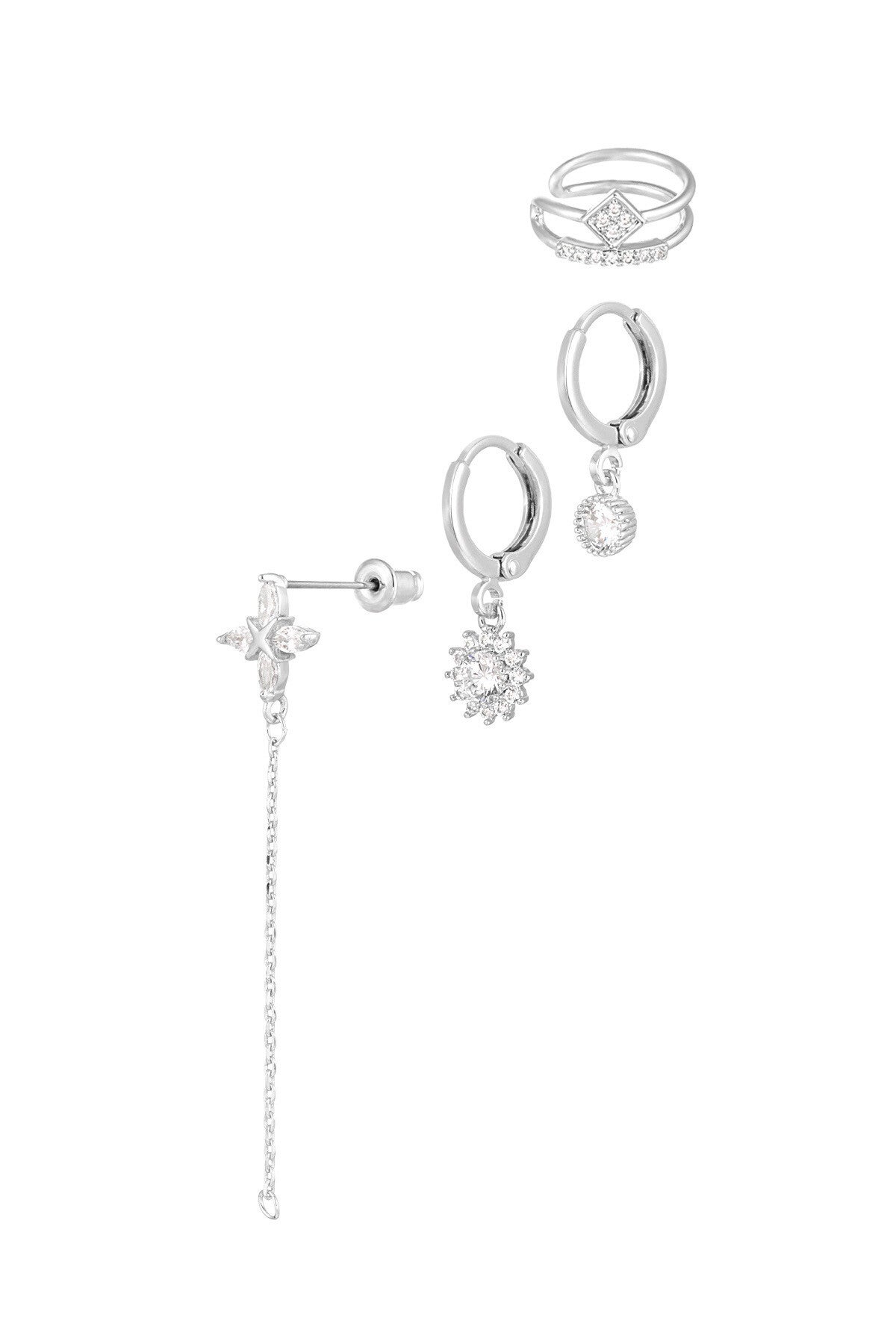 De oorbellen hebben alle 4 glinsterende details en zijn superleuk met elkaar te combineren.