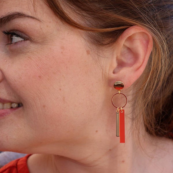 Totale lengte: 6,1 cmTotale breedte: 1,5 cmMateriaal: Gold plated, nikkelvrije messing, acryl