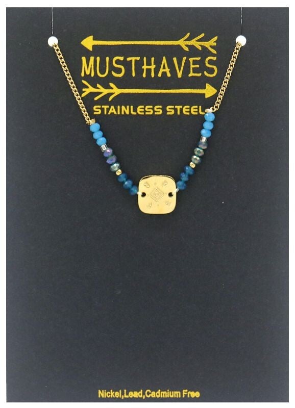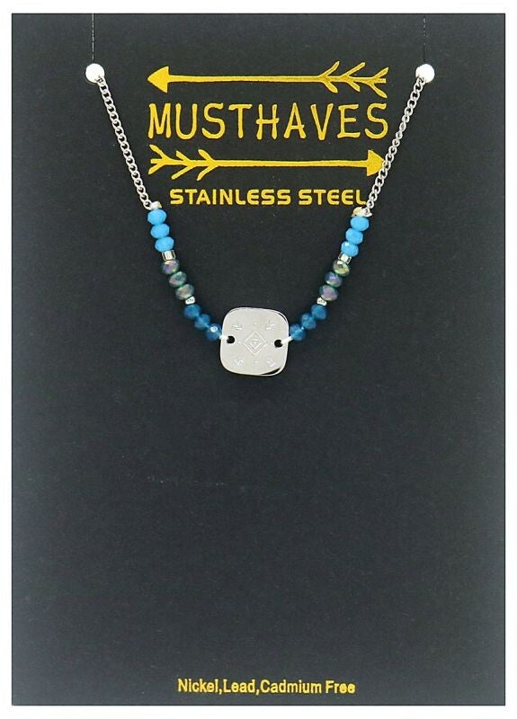 Supertoffe armband van RVS met blauwe kraaltjes en bedel en een verlengkettingkje.