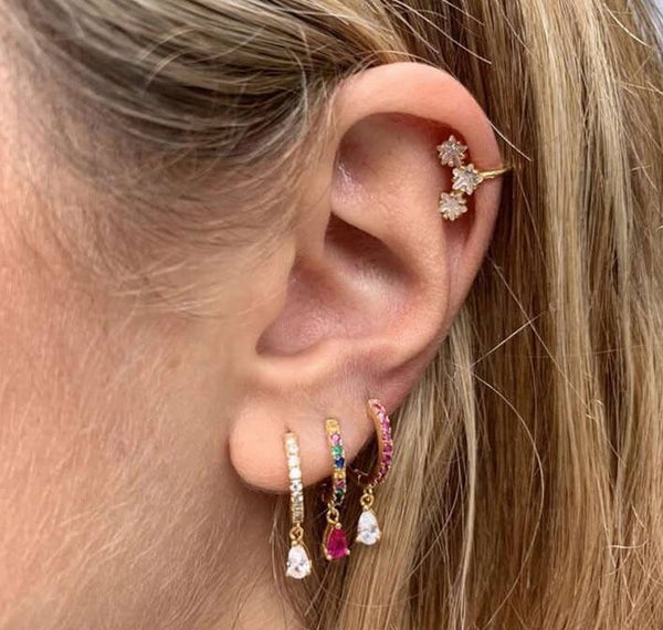 Deze prachtige hoops zijn gemaakt van sterling zilver met turquoise steentjes en een delicate traanvormige zirkonia hanger.