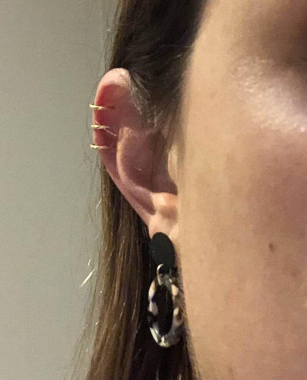 Je hebt er geen gaatjes voor nodig, schuif ze gewoon over de rand van je oorschelp en je hebt een echte eyecatcher.