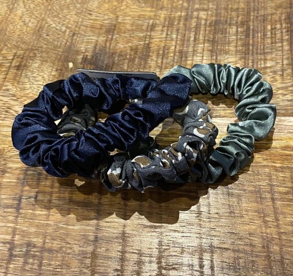 Scrunchie trio grijs - donkerblauw - grijsgroen