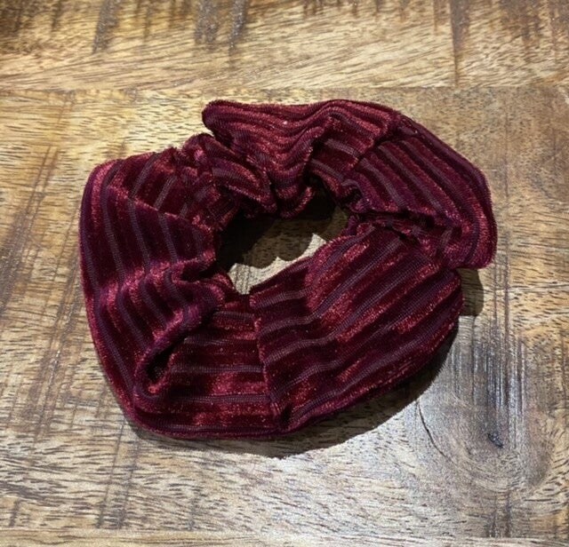Scrunchie velvet stripe bordeaux