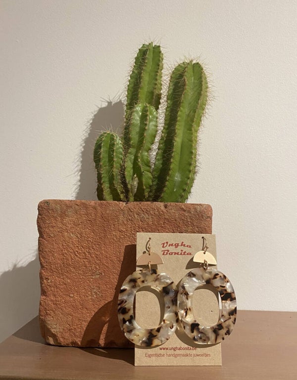 Grote oorbellen in kunsthars of resin zijn momenteel de trend! De Resina collectie zijn hippe juweeltjes gemaakt uit kunsthars met metalen accenten in geometrische vormen.