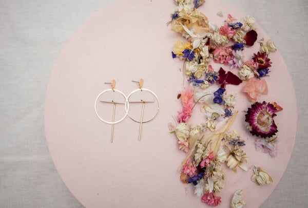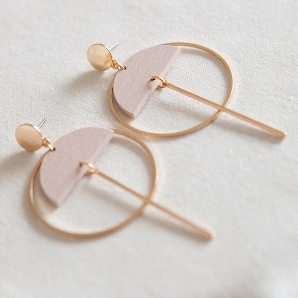Handgemaakte oorbellen van Studio Nok Nok.Totale lengte: 7,5 cmTotale breedte: 4,0 cmMateriaal: Stainless steel RVS - HarsHout: Upcycled essenhout