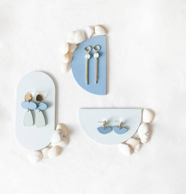 Handgemaakte oorbellen van Studio Nok Nok.Totale lengte: 2,4 cmTotale breedte: 2,6 cmMateriaal: Gold plated - Nikkelvrije messingHout: Upcycled essenhout