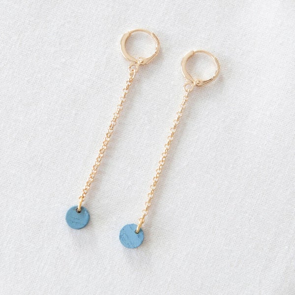 Handgemaakte oorbellen van Studio Nok Nok.Totale lengte: 6,4 cmTotale breedte: 1,1 cmMateriaal: Gold plated - Nikkelvrije messingHout: Upcycled essenhout
