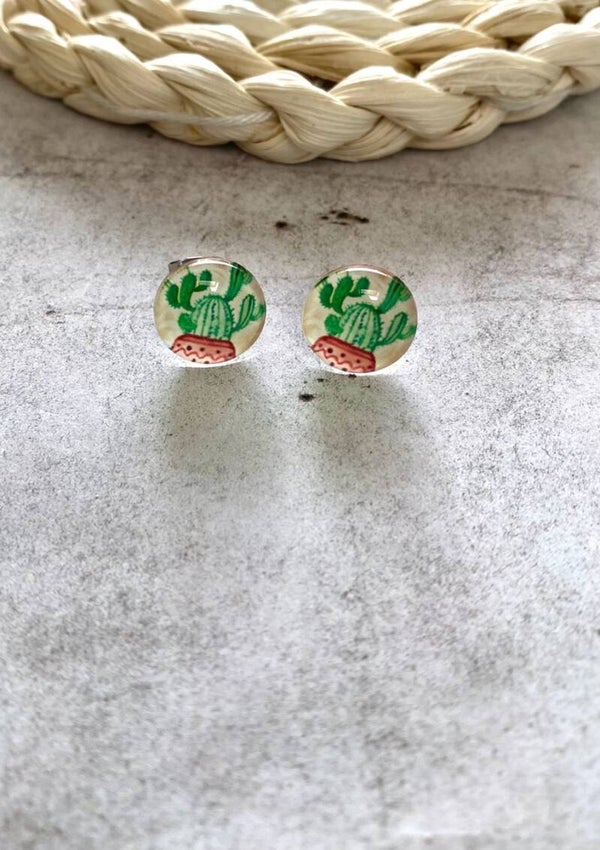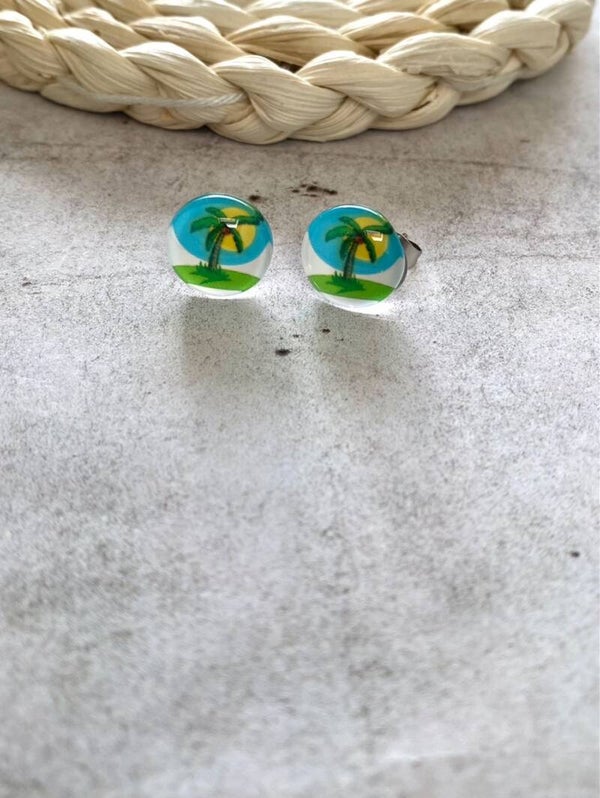 Roestvrijstalen oorstekers met daarop een mooie cabochon van 12 mm met verschillende zomerse tekeningen.