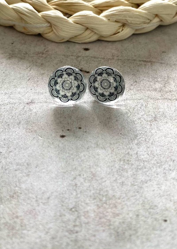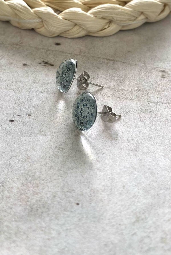 Roestvrijstalen oorstekers met daarop een mooie cabochon van 12 mm met verschillende motieven.