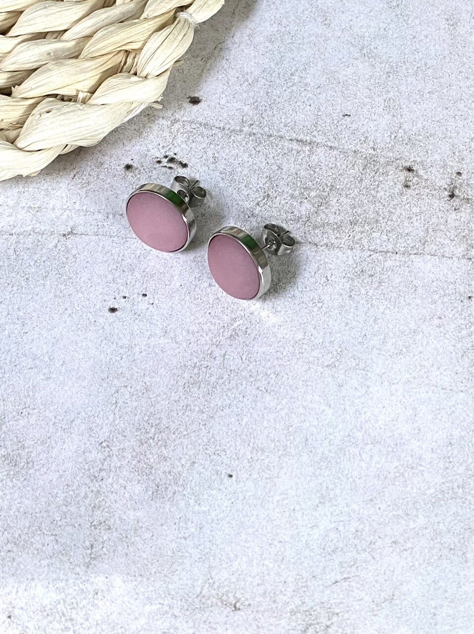 Zilverkleurige Polaris steel (RVS) oorstekers met daarin een mooie cabochon van 12 mm.