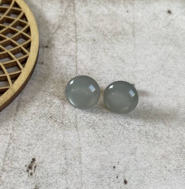 Roestvrijstalen oorstekers met daarop een mooie grijze cabochon van 12mm.
