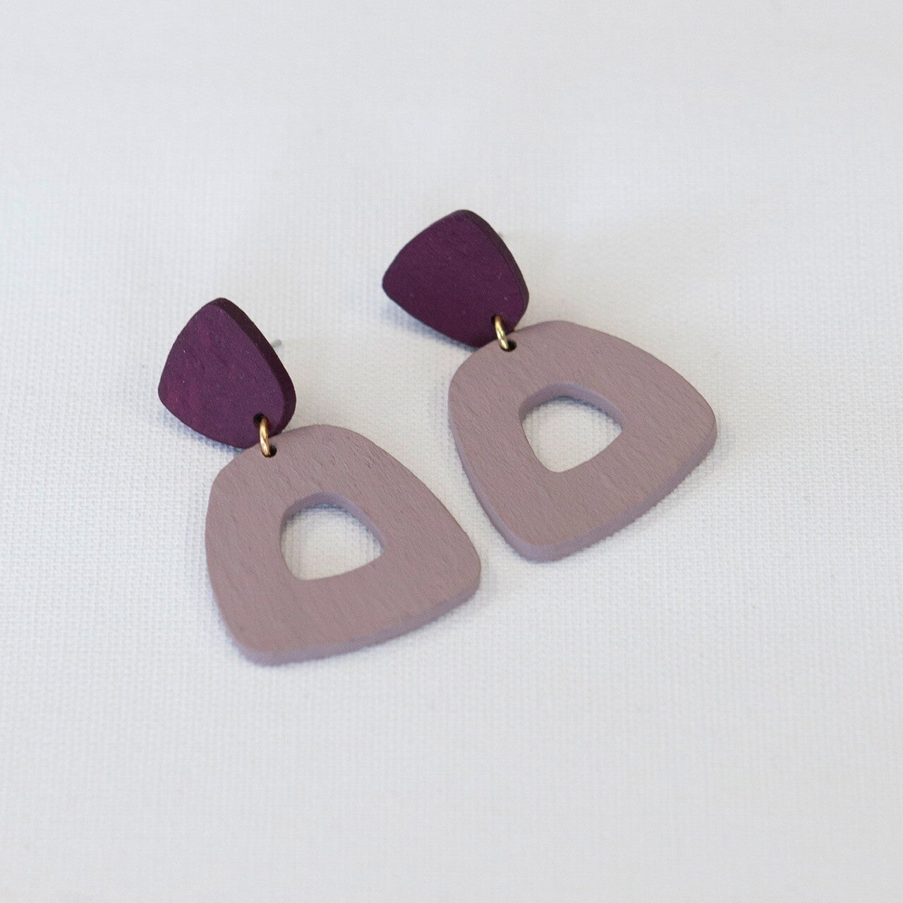 Handgemaakte oorbellen van Studio Nok Nok.Totale lengte: 4,2 cmTotale breedte: 2,6 cmMateriaal: Gold plated, nikkelvrije messingHout: Upcycled hout