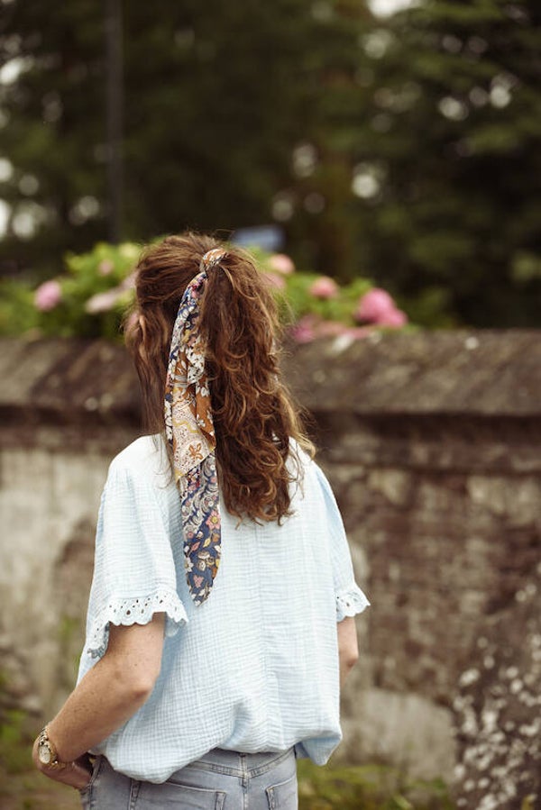 Hairjewelz sjaaltje Retro Flower blauw