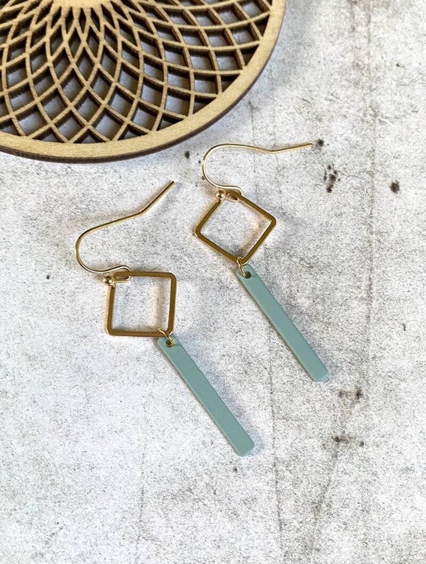 Nikkelvrije oorhangers met daaraan nikkelvrije ruitjes en staafjes met rubbercoating.