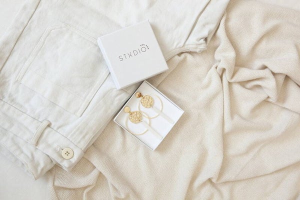 Totale lengte: 8,2 cmTotale breedte: 4 cmMateriaal: Gold plated, nikkelvrije messing & 100% gerecycleerd acryl