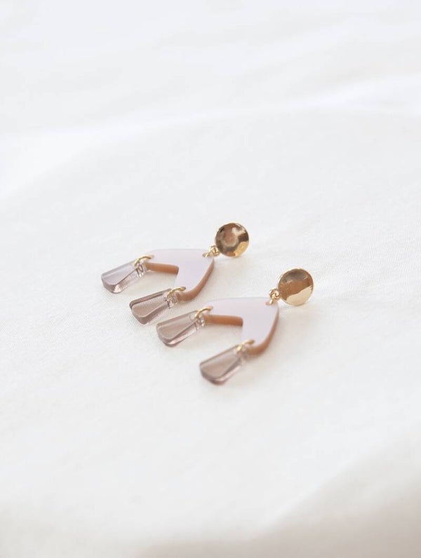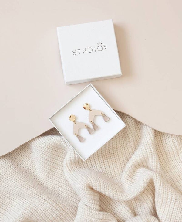 Handgemaakte oorbellen van Studio Nok Nok.Totale lengte: 4,3 cmTotale breedte: 2,9 cmMateriaal: Gold plated, nikkelvrije messing & 100% gerecycleerd acryl
