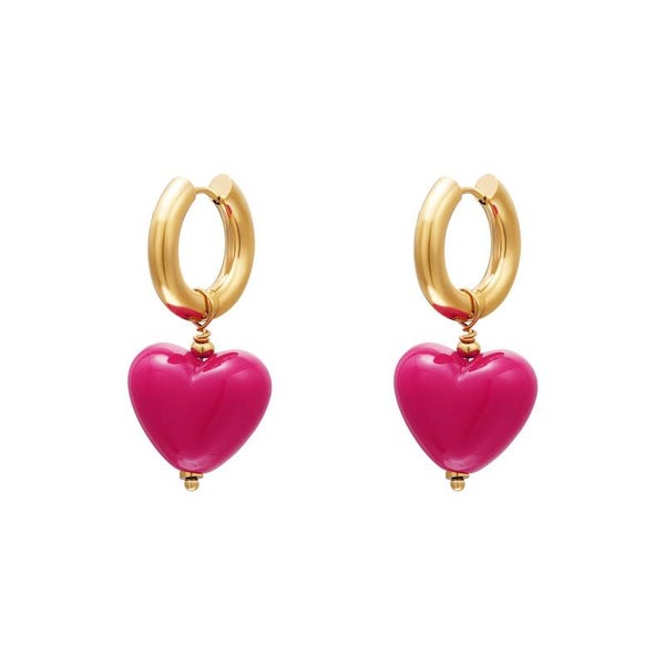 Gouden oorringen met een kleurrijke hartkraal.