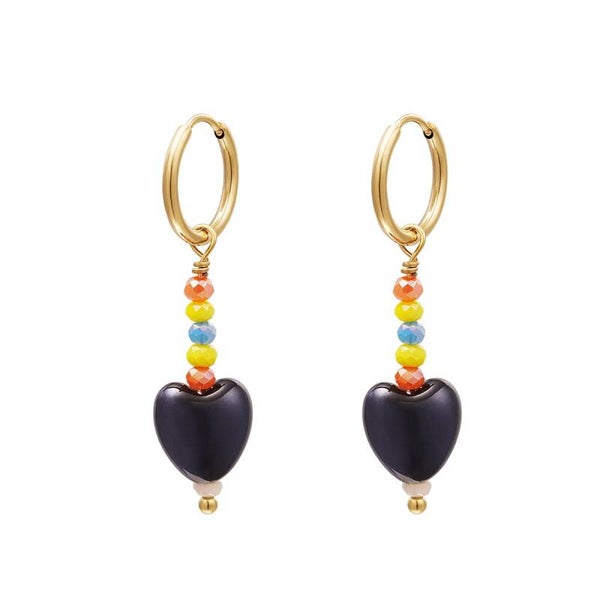 Gouden oorringen met een kleurrijke hartkraal, verkrijgbaar in 2 kleuren.