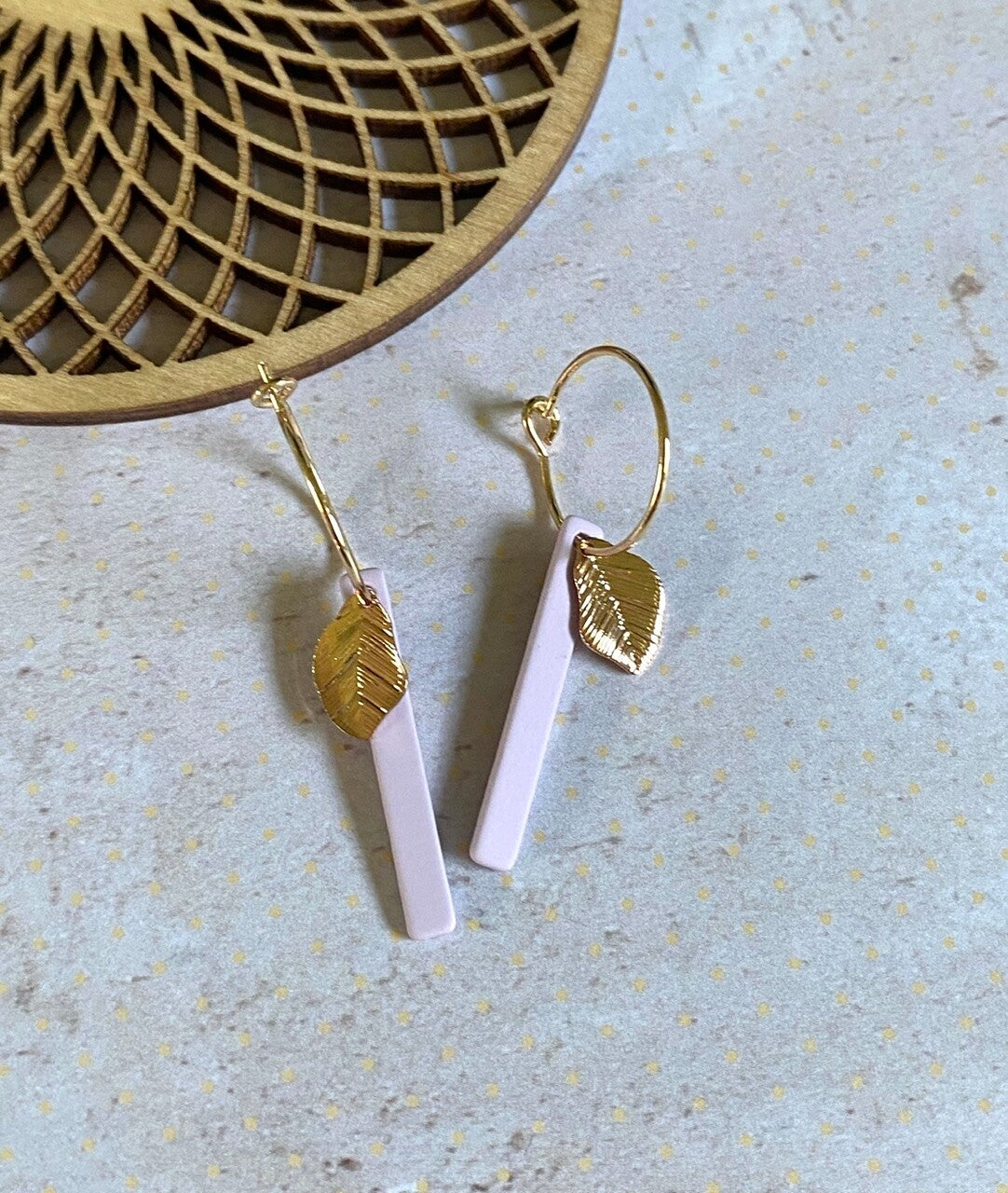 Nikkelvrije oorringen van 15mm met daaraan gerubbercoate staafjes en nikkelvrije blaadjes.