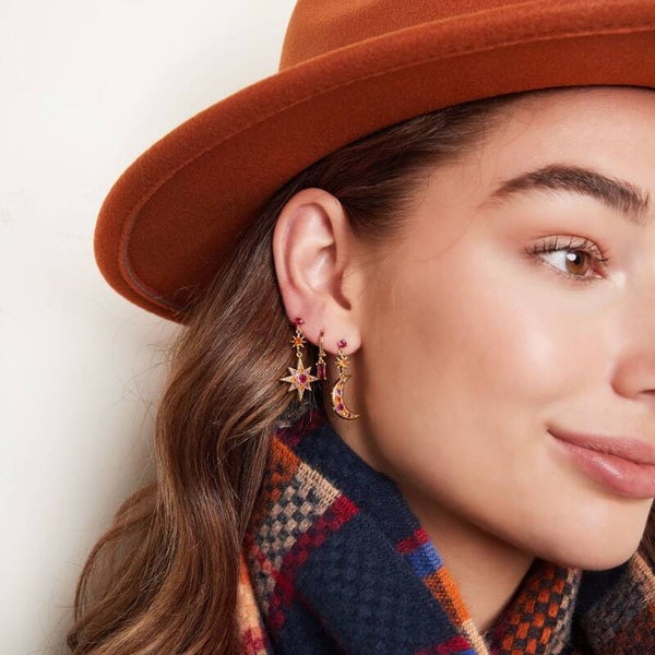 Oorbellen sparkle star & moon goud - fuchsia - oranje