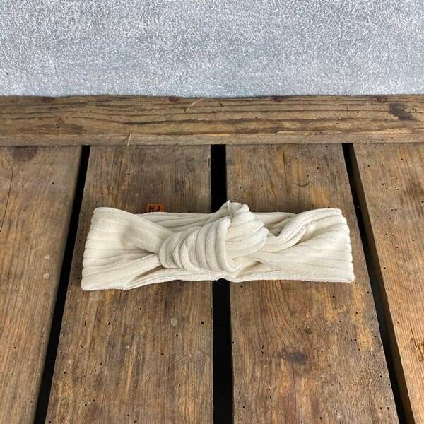 De knoop bovenop kun je verstellen waardoor de haarband groter en kleiner gemaakt kan worden. De min. omtrek maat is 35cm en de max.maat 50cm.