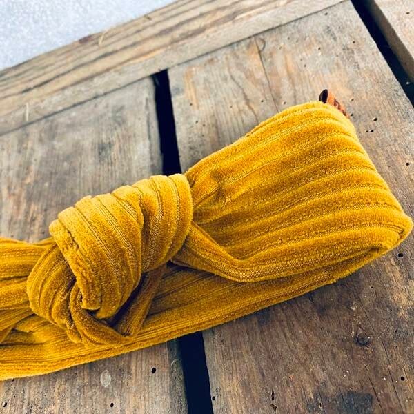 De knoop bovenop kun je verstellen waardoor de haarband groter en kleiner gemaakt kan worden. De min. omtrek maat is 35cm en de max.maat 50cm.