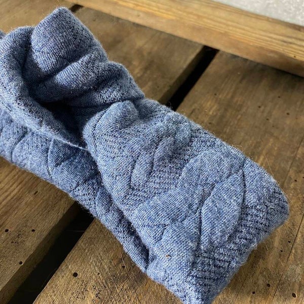 Baby/kids haarband bandeau Cably jeansblauw