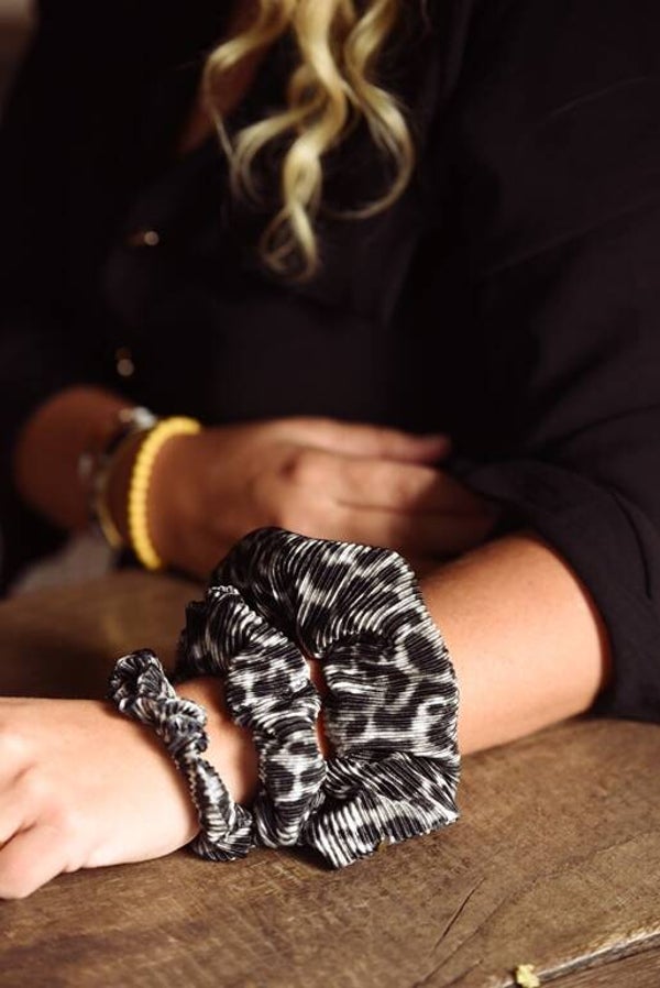 Model: Scrunchie originalMateriaal: PaisleyKleur: Zwart, witOmtrek: 12 cm