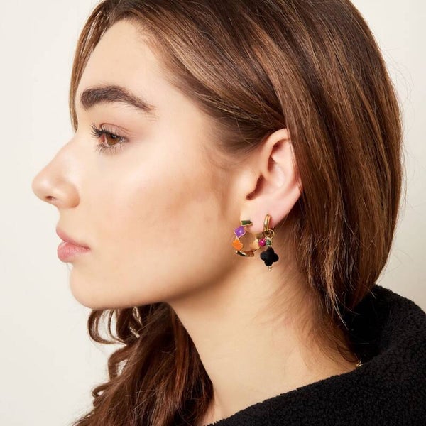 Hoops clover & beads goud - zwart