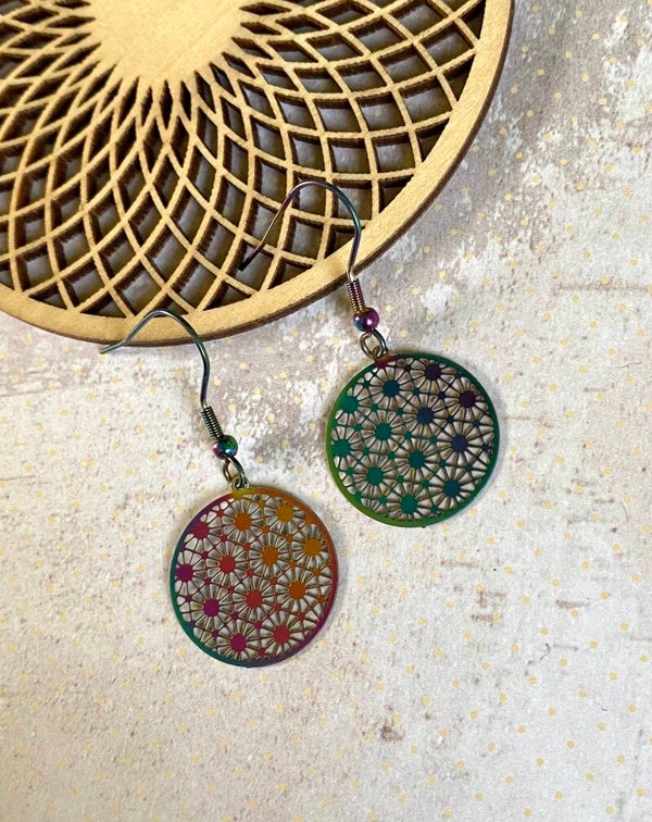 Een super tof multicolor oorbelletje!Hij verandert van kleur naargelang hoe het licht erop valt.De oorhanger is van stainless steel.