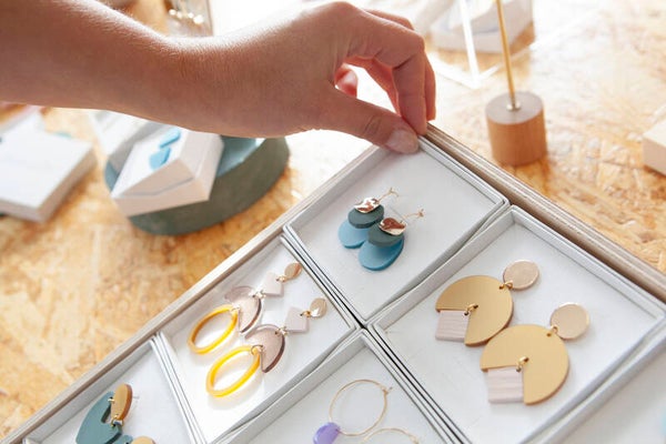 Totale lengte: 3,7 cmTotale breedte: 2,0 cmMateriaal: Gold plated, nikkelvrije messing, 100% recycled acryl + upcycled hout