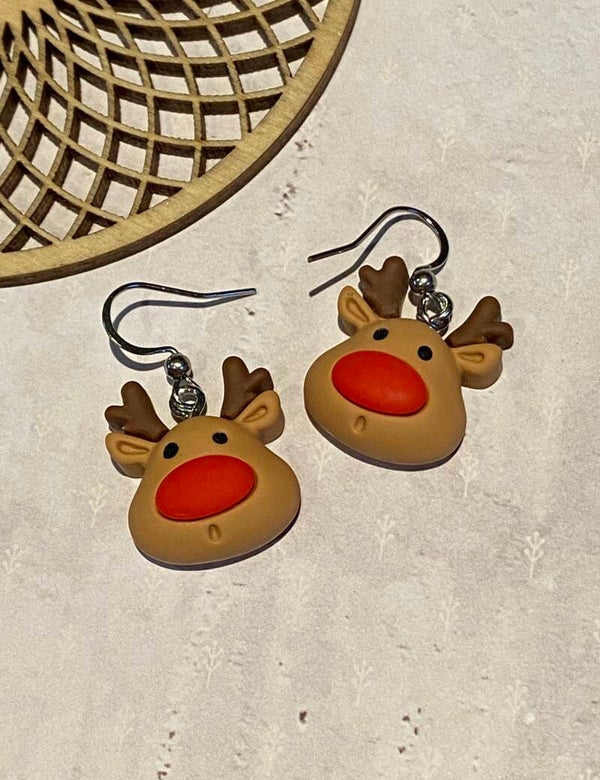 Superschattige rendieren uit resin aan een zilveren, roestvrijstalen oorhaakje!Dancer is één van de rendieren die samen met Rudolph de slede van de kerstman trekt!