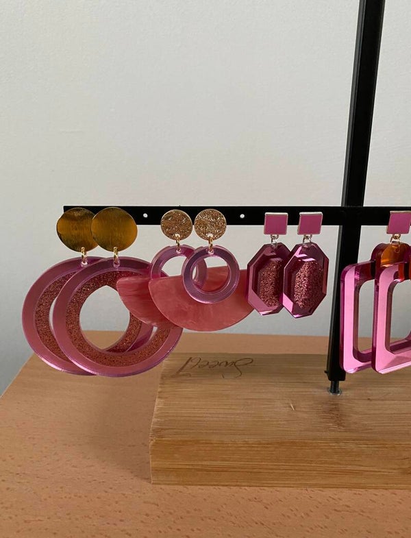 Oorbellen Nouchka roze metallic glitter